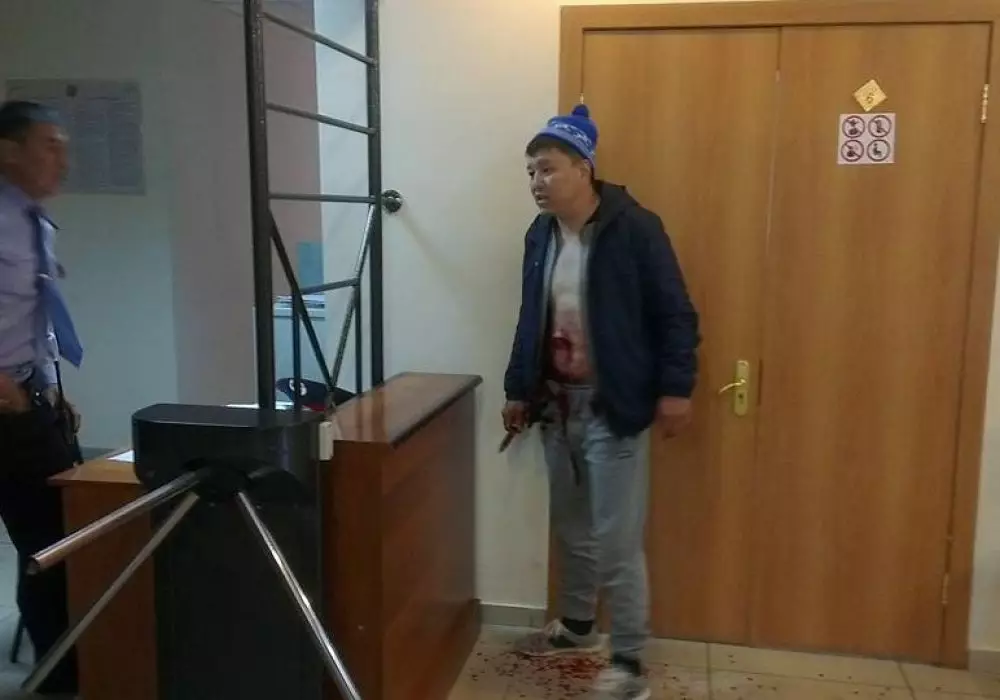 "Возбужденный человек с ножом несколько минут стоит в здании суда, но его даже не пытается никто обезвредить, не говоря уже об оказании первой помощи (...)", - написал в соцсетях очевидец к видео.