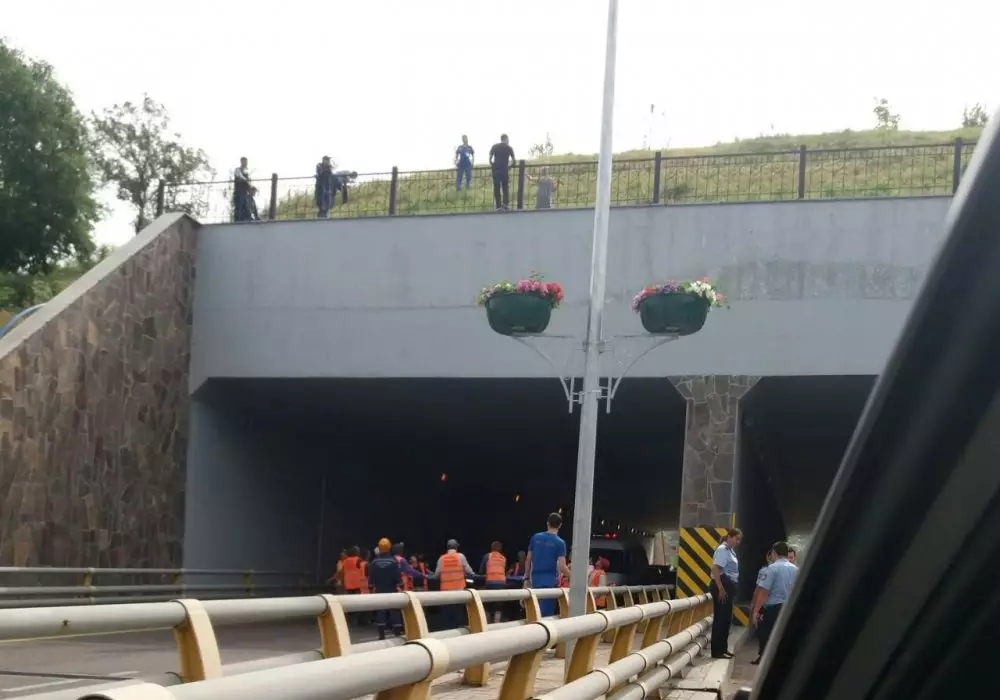 По его словам, инцидент произошел около 10 утра. На место происшествия прибыли сотрудники полиции, скорая помощь и спасатели, которые натянули тент под мостом.