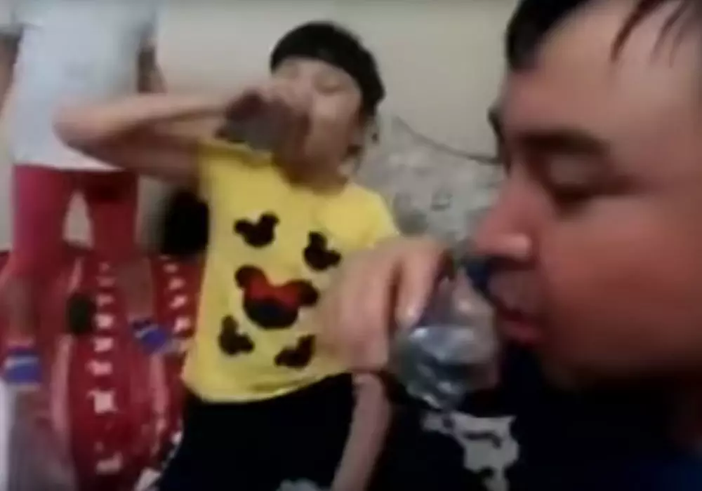 МВД РК изучает видео, на котором отец "спаивает" детей Кадр из видеоролика YouTube