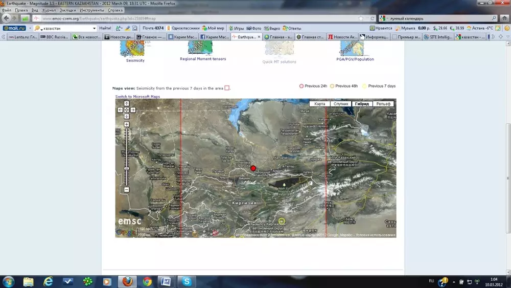 На юге Казахстана произошло землетрясение магнитудой 3,5, передает корреспондент Tengrinews.kz со ссылкой на Европейско-Средиземноморский сейсмологический центр. Колебания зафиксированы 10 марта в 00:31 по алматинскому времени. Эпицентр подземных толчков находился на глубине четырех километров в 141 километре к западу от Алматы и в 42 километрах к северо-востоку от Георгиевки. Не исключено, что подземные колебания чувствовались и в Кыргызстане - эпицентр находился в 62 километрах к северо-востоку от Бишкека и в 43 километрах северо-западнее города Токмак. Информации о жертвах и разрушениях нет.