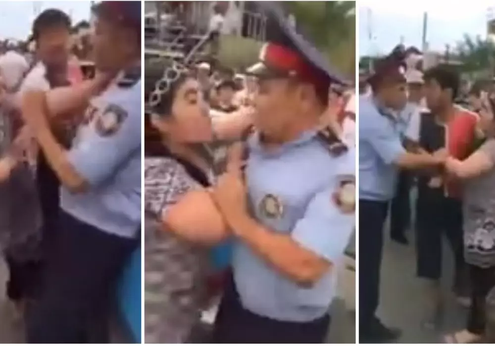 Напавшую на полицейских женщину арестовали в Туркестане Кадры из видеоролика YouTube