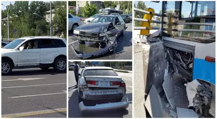 По данным "Алматыэлектротранса", двигавшийся по проспекту Абая автобус после остановки "3-й микрорайон" перед улицей Саина продолжил движение в юго-западном направлении по маршруту. "Во время движения у водителя автобуса резко ухудшилось самочувствие, и он частично потерял сознание, в результате чего произошло столкновение с тремя легковыми автомобилями Audi, Volkswagen Touareg и Toyota Camry. Водителю удалось справиться с управлением, завершив свое движение около ограждения моста. По данным GPS-навигации автобуса, подвижная единица двигалась со скоростью 33 километра в час в момент совершения ДТП", - сообщили в пресс-службе организации.
