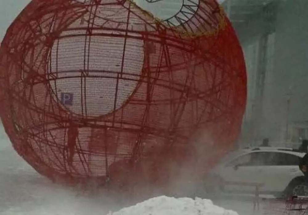 Новогодняя инсталляция возле торгово-развлекательного центра "Керуен" повредила автомобиль, передает корреспондент Tengrinews.kz.