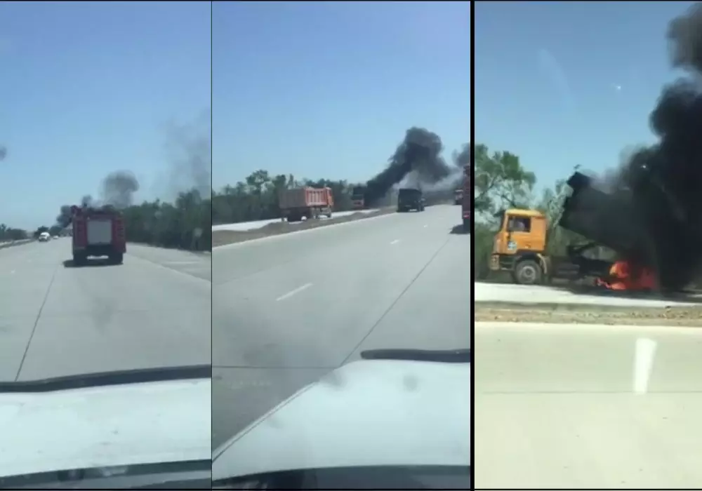 На трассе Алматы - Капшагай загорелся грузовой автомобиль, передает корреспондент Tengrinews.kz. Видео инцидента в редакцию портала прислал читатель.