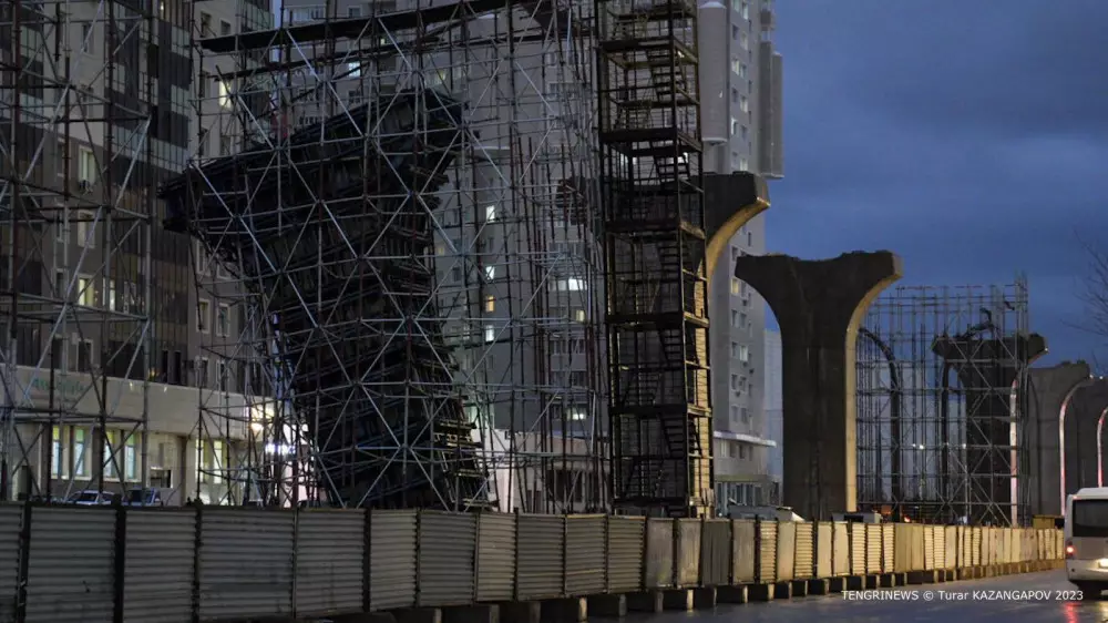 По улице Калдаякова накренилась опорная конструкция строящейся системы легкорельсового транспорта LRT.