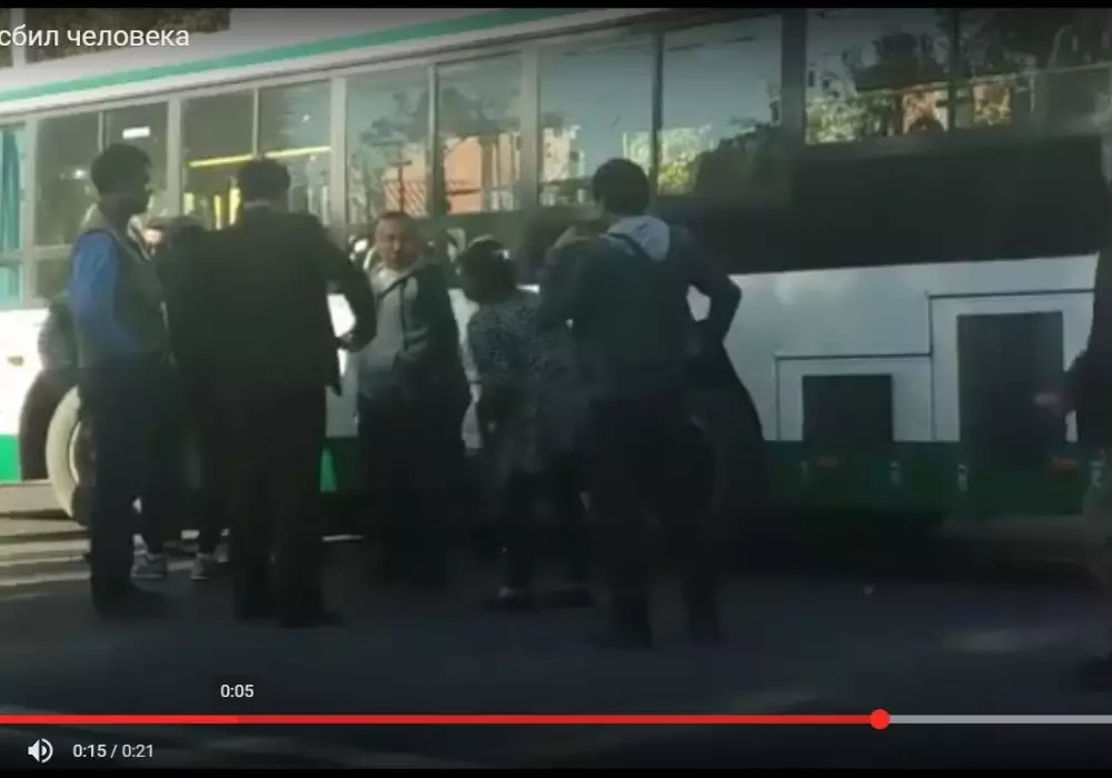 Инцидент произошел на центральной улице Шымкента прямо на пешеходном переходе около парка "Кенбаба". Водитель автобуса №78 компании "Грин бас" не уступил дорогу женщине, которая шла по пешеходному переходу.