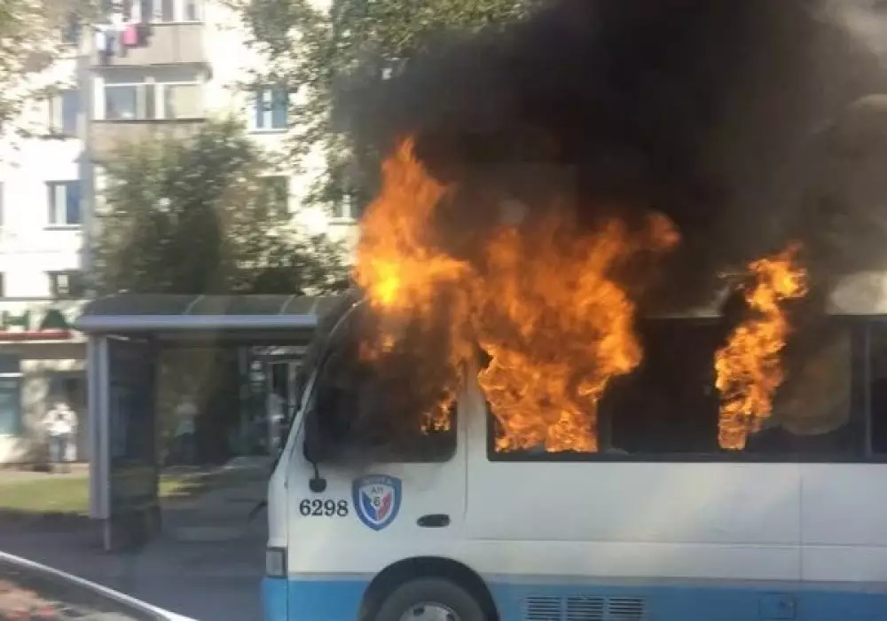 Пассажирский микроавтобус горел в Астане, сообщает сайт astinfo.kz