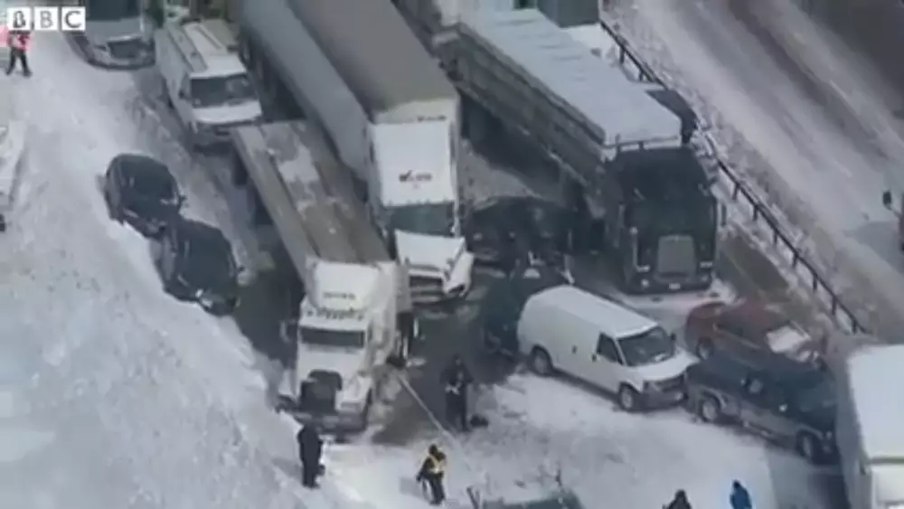 Авария произошла к северу от Торонто на трассе №400. Повреждения получили 96 транспортных средств. Причиной стала внезапная метель, которая резко понизила видимость на дорогах всего до нескольких метров. В результате три человека были госпитализированы, однако пока неизвестно, есть ли среди них тяжело раненые.