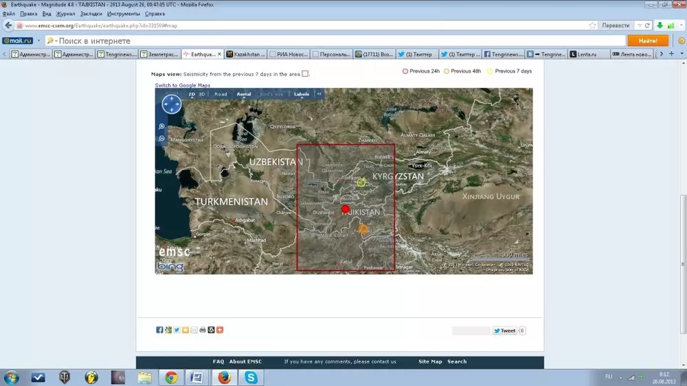 Информации о пострадавших и разрушениях нет. Землетрясение могли ощущать жители южных районов Казахстана.