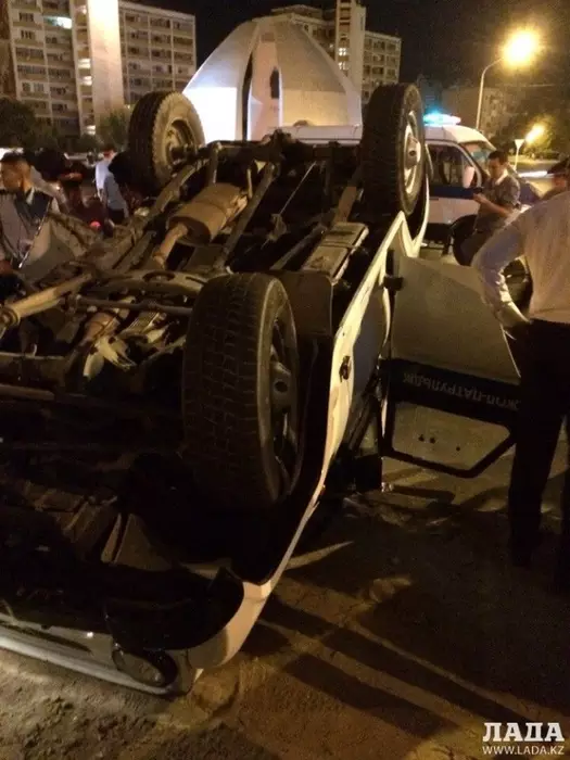 Полицейский автомобиль перевернулся в ДТП в Актау Фото с сайта Lada.kz.
