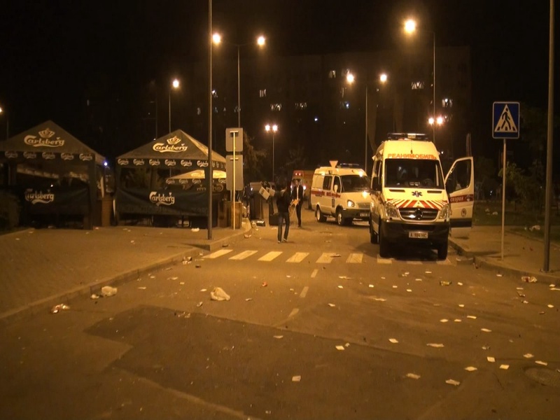 В Алматы полицейские задержали 107 участников беспорядков возле торгово-развлекательного центра "Прайм Плаза", передает корреспондент Tengrinews.kz. Число пострадавших уточняется, только 16 человек получили тяжелые ранения. По данным полицейских, задержанных распределили по четырем РОВД города. Во время прямой трансляции Tengrinews TV у здания Ауэзовского отдела родственники задержанных сами едва не устроили потасовку. Возмущение людей вызвало отсутствие списков, они не знали, в каком именно отделе находятся их родные. Родственники задержанных также утверждают, что полицейские задерживали невиновных - в РОВД якобы оказались водители проезжавших мимо автомобилей, их "буквально вытаскивали из машин". Напомним, вечером 31 августа на территории парковки ТРЦ "Прайм Плаза" (пересечение улиц Саина и Райымбек батыра) зрители концерта Кайрата Нуртаса устроили погромы. Певец исполнил одну песню, после чего ушел из соображений безопасности - зрители начали напирать на сцену. Участники беспорядков повредили несколько служебных и гражданских автомобилей, полностью разгромили сцену и частично разбили ТРЦ. Только прокатчикам концертного оборудования нанесен ущерб более чем на 150 тысяч долларов. Возбуждено уголовное дело по статье "Хулиганство". На этих видео кадрах видно, что Нуртас допел песню и покинул концерт, а ведущие пытаются успокоить зрителей (автор Нуржан Тажибаев / Youtube):