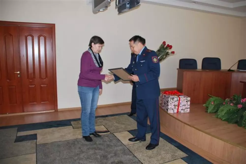 Заместитель начальника городской полиции Газиз Нуркаев вручил благодарственное письмо, цветы и памятный подарок 57-летней жительница Медеуского района Татьяне Васильевой. Бдительная женщина, спустя несколько дней после перестрелки в Алматы, во время которой погиб один из сотрудников компании Travel Express, а второй был тяжело ранен, в палисаднике собственного дома обнаружила пистолет, о чем сразу же сообщила в полицию. Сыщикам женщина уточнила, что перед находкой видела двух мужчин у ворот дома.