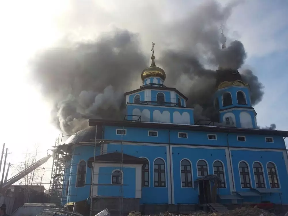 Пожар в Алматы: Церковь загорелась на проспекте Аль-Фараби Горит Петропавловский храм. Фото ©"Территория происшествий"