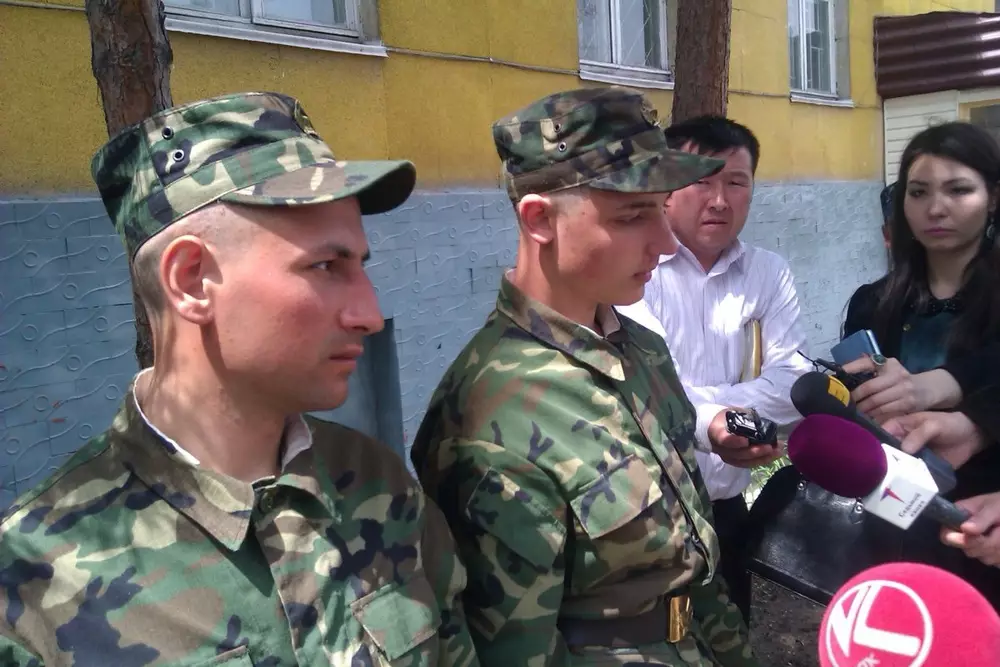 Сбежавших из психдиспансера в Алматы рядовых Владислава Кобезева и Григория Тырпова вычислили по сотовой связи, передает корреспондент Tengrinews.kz. Об этом во время брифинга сообщил командир воинской части №5571 Нурлан Мухамедов. Напомним, 24 апреля военнослужащие совершили самовольное оставление части из поликлиники ДВД во время обследования на пригодность к службе, воспользовавшись отсутствием медсестры. Семь дней солдаты находились в розыске. "Были найдены 1 мая в районе поселка Айдарлы, по карагандинской трассе от Алматы в 150 километрах. По оперативной информации, которая поступила от органов военной полиции, был обнаружен сигнал сотовой связи у рядового Кобезева. По данному сигналу мы отработали во взаимодействии с полицией местонахождение данного абонента", - сказал Мухамедов. По его словам, причину самовольного ухода рядовые объяснили тем, что устали от различных обследований и лечения, так как с самого начала службы все время находились в лазаретах. "Хотя все эти обследования были проведены по их показаниям. Они неоднократно жаловались врачам лазарета, медицинского пункта, о чем было доложено и мне лично", - добавил командир воинской части. При этом Мухамедов подчеркнул, что солдаты боевую и строевую службу не проходили и неоднократно отказывались служить. "Согласно Административному кодексу, это является административным правонарушением. Но это уже будет решение суда. Уголовного дела не будет (...) Я считаю, что на данном этапе был некомпетентный отбор призывников. Данные военнослужащие по своим моральным качествам не должны были вообще попасть в армию", - заключил командир воинской части №5571. Между тем, сами рядовые пояснили, что никакого давления на них в воинской части не было, а оставить службу они решили, так как изначально не хотели идти в армию.