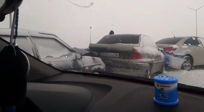 Сразу шесть автомобилей столкнулись на автотрассе Актобе - Курайлы в Актюбинской области. Инцидент произошел днем 1 января. Видеозапись с места аварии, сделанную очевидцами, публикует страница zello_aktobe в Instagram. О жертвах или пострадавших в ходе ДТП ничего не известно.