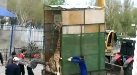 Напомним, видео доставки жирафа к мини-зоопарку, который расположен возле торгового центра "Нурдаулет", ранее появилось в Сети. У большинства увиденное вызвало возмущение. Жираф при транспортировке находился в самодельном узком вагончике, явно неподходящем для животного. Скрюченного жирафа пытаются вытянуть из узкой коробки при помощи автогена. Выбравшееся животное, судя по видео, находится в стрессовом состоянии.