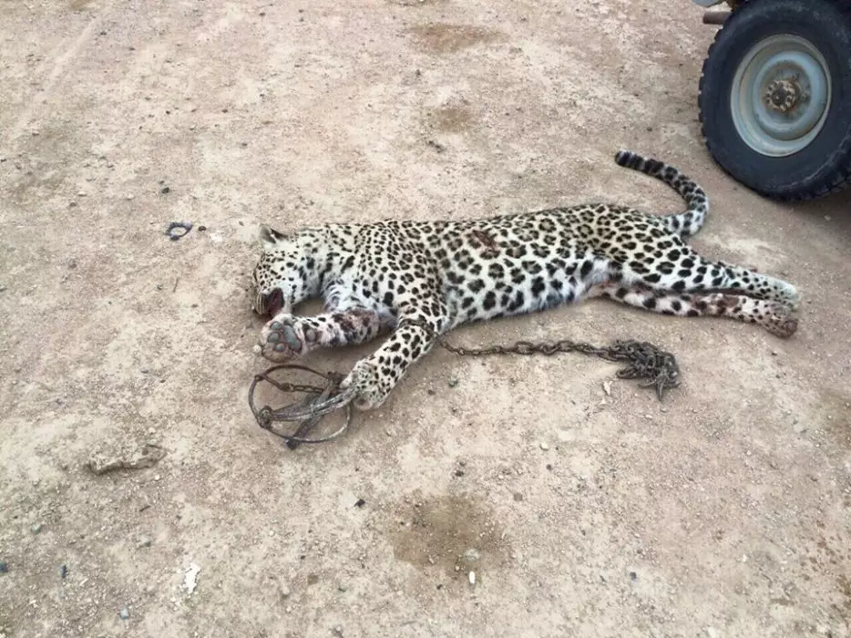 Фотографии мертвого леопарда попали в Сеть. Известно, что снимки сделаны на небольшом водопое возле Жанаозена. Предполагается, что люди добили попавшее в капкан животное. Также есть версия, что хищника умертвили чабаны после того, как он напал на человека.
