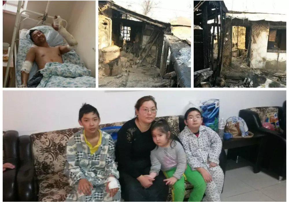 В ту ночь мама была на смене, дома находился глава семейства с детьми (старший учится в 8-м классе, младшие ходят в детский сад). Отец, спасая детей, получил сильные ожоги. В настоящий момент мужчина находится в реанимации в городской больнице Талгара. Там же с ожогами разной степени тяжести находятся пострадавшие дети. Маме Асель разрешили временно остаться в лечебном учреждении, так как семья лишилась крова.