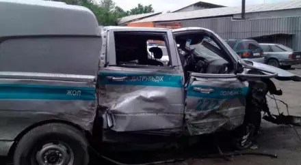 Авария произошла в ночь на 8 мая в городе Талгар. На видеозаписи, снятой камерой наружного наблюдения, видно, как автомобиль Audi, двигающийся с превышением скорости по встречной полосе, влетел в автомобиль полицейского патруля.