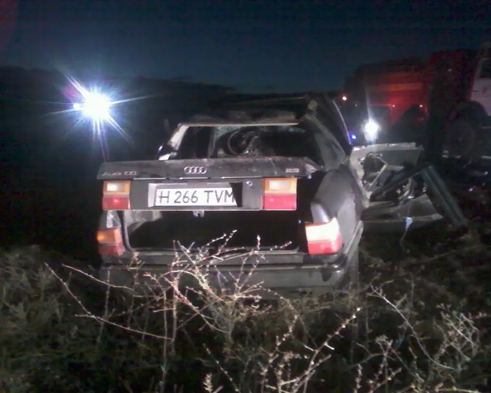 Авария произошла в ночь на 25 августа на 185-м километре автодороги Алматы - Ташкент. Автомобиль Аudi-100, 35-летний водитель которого мог уснуть за рулем, выехал на полосу встречного движения и столкнулся с автомобилем такой же марки под управлением 19-летнего молодого человека. В результате аварии погибли оба водителя и их 8 пассажиров.