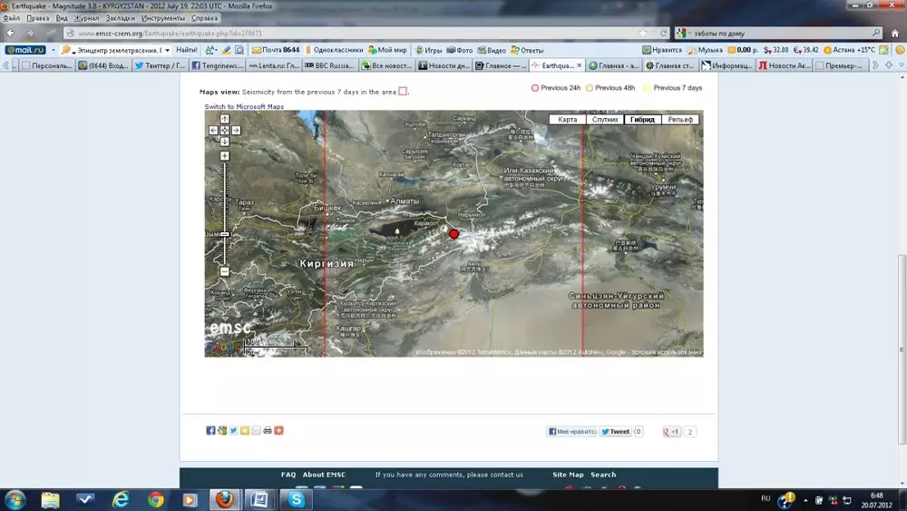 В 240 километрах от Алматы произошло землетрясение Эпицентр землетрясения. Изображение с сайта emsc-csem.org