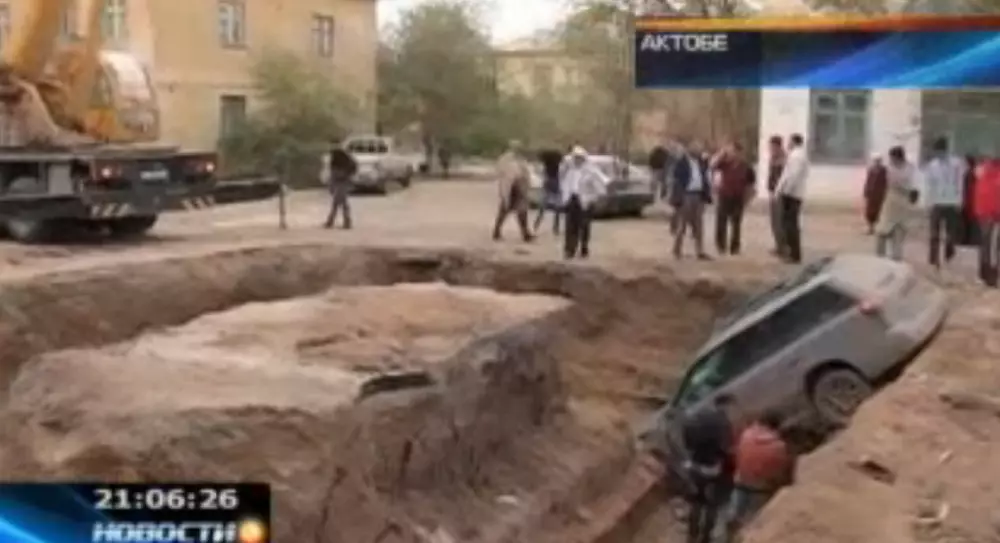 В Актобе водитель машины чуть не погиб, провалившись в яму, вырытую посреди дороги. Как передает КТК, рабочие не оградили место ремонта и не установили предупредительных знаков.