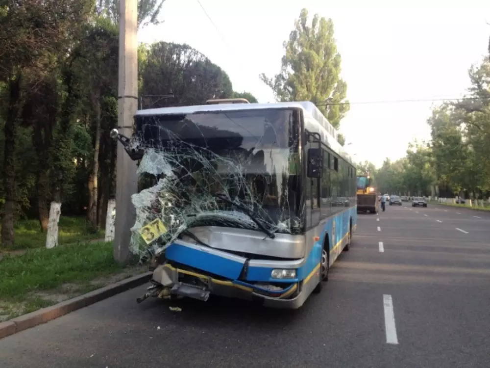Отмечается, что оба транспортных средства двигались по проспекту Суюнбая. Автобус уже направлялся в парк, однако водитель не справился с управлением и на высокой скорости врезался в грузовик. В результате столкновения мусоровоз вылетел с дороги на обочину и врезался в столб.
