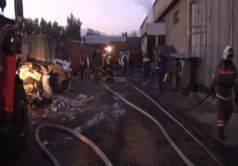 Юридический адрес склада: улица Бокейханова, 514 (бывшая Аэродромная). Площадь возгорания - примерно 150 квадратных метров. Пострадавших при пожаре не обнаружено.