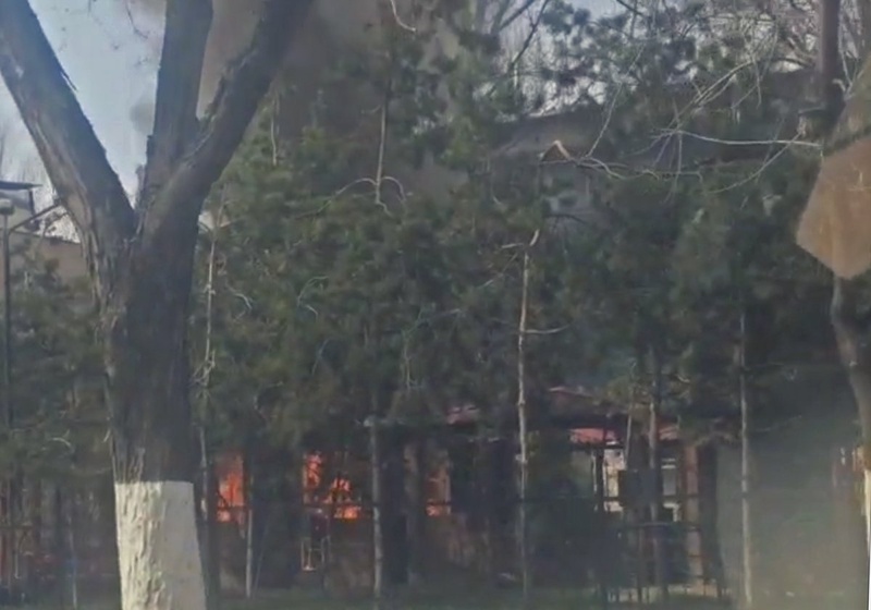 В Алматы горит столовая "Каганат" Кадр из видеоролика размещенного в Instagram пользователем aijanym_07