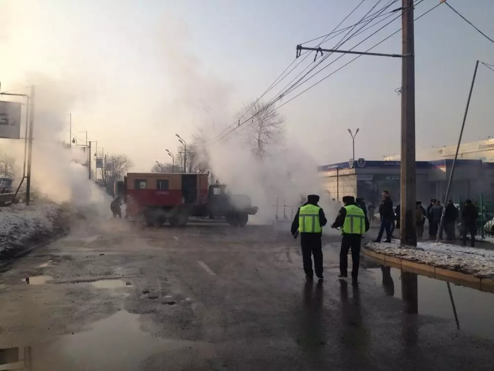 На пересечении проспекта Райымбека и переулка Коммунальный в Алматы произошел порыв теплотрассы, сообщает корреспондент Tengrinews.kz со ссылкой на пресс-службу ГКП "Холдинг Алматы Жылу". Дорога сейчас перекрыта. Предварительно стало известно, что пострадали 6-7 студентов колледжа. Они госпитализированы. Также ожог ноги получил еще один человек, переходивший дорогу в момент аварии. По данным холдинга, авария произошла на подающем водоводе, диаметром 800 миллиметров. Теплоснабжение временно пришлось отключить до улиц Маметовой и Чайковского. Авария произошла в 14.30. Как сообщили врачи, всего в результате аварии пострадали девять человек, среди которых один несовершеннолетний. Двое из них находятся в тяжелом состоянии. Все пострадавшие с ожогами доставлены в различные больницы города. По предварительным данным, причиной порыва теплотрассы стал износ трубы. "Это будет выяснено, когда найдем повреждение. Сейчас туда выехали аварийные бригады. Пусть люди не беспокоятся. Дома сохраняют тепло около двух суток", - отметили в пресс-службе. Отметим, что на участке порыва нет больниц и школ, только промышленные объекты. "Алматинские тепловые сети сотрудничают со страховой компанией, в случае повреждения компания выплатит деньги. Вообще, трубы рассчитаны на 25 лет, эти трубы давно выработали свой срок", - добавили в холдинге. Как сообщил официальный представитель ГКП "Холдинг "Алматы жылу" Ян Гирин, без водоснабжения осталось 57 объектов, из них 14-ти (пять многоквартирных домов, колледж и восемь промышленных объектов) воду подключат не раньше утра 20 декабря, остальные объекты в течение часа будут подключены к другой магистрали. По словам очевидцев, затопило подвал автосалона "Вираж". По их словам, в автосалоне находилось около 10 машин. Как сообщил юрист автосалона Михаил Паршуков, также на СТО салона, где находились автомобили, в результате аварии пострадало и дорогостоящее оборудование, которое оценивается в сотни тысяч тенге.