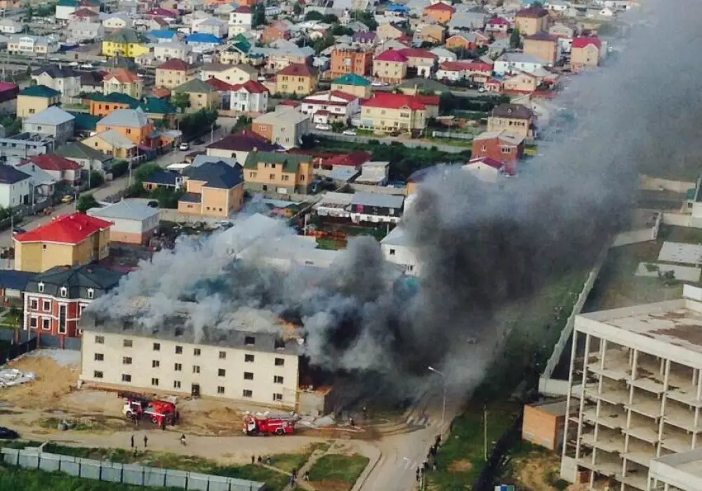В Астане горит кровля трехэтажной хозпостройки, площадь пожара составляет 250 квадратных метров, передает корреспондент Tengrinews.kz.