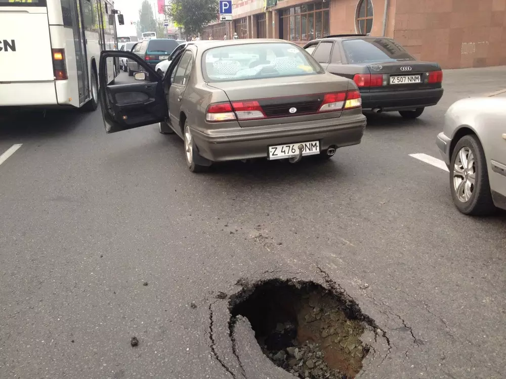 "Я выехал из туннеля, на проспект Республики, затем я почувствовал большой грохот спереди и по инерции дал газу, проскочив образовавшуюся передо мной яму. Я остановился и в панике позвонил в "102". Дежурный попросил дождаться сотрудников дорожной полиции. Позже подошли дорожные полицейские, которые ничем мне не могли помочь. Меня возмутило такое качество автодорог и, отсутствие безопасности на главной дороге Астаны, а также бездействие полицейских. Меня никто не допросил, не предложили эвакуатора, не предложили техническую помощь, а просто попросили убрать машину с проезжей части и сами удалились. Сотрудники полиции объяснили свою занятость предстоящим праздником - Днем столицы и сослались на занятость всего состава дорожной полиции. Они объяснили, что дознаватели приедут только в 24.00 часа. Я не решился стоять у дороги столько времени", - рассказал пострадавший от провала дорожного полотна Думан Кожахметов.