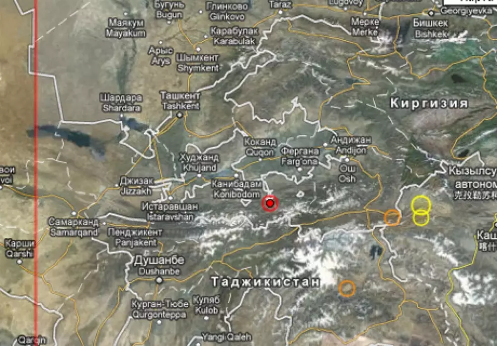 На территории Кыргызстана недалеко от границы с Узбекистаном произошло землетрясение магнитудой 4,2. Об этом сообщается на сайте Европейско-Средиземноморского сейсмологического центра. Эпицентр землетрясения располагался в 226 километрах к югу от Ташкента и 81 километре к югу от узбекского города Коканд на глубине один километр. Подземный толчок зарегистрирован 8 марта в 23.13 по ташкентскому времени. Информации о жертвах и разрушениях нет.