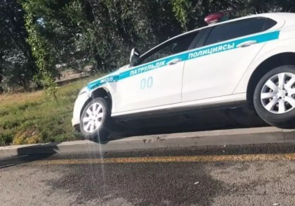В полиции рассказали, как их служебное авто упало в арык, передает корреспондент Tengrinews.kz.