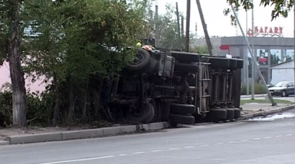 В Семее грузовик сбил несколько столбов и перевернулся, передает корреспондент Tengrinews.kz со ссылкой на пресс-службу УВД города.