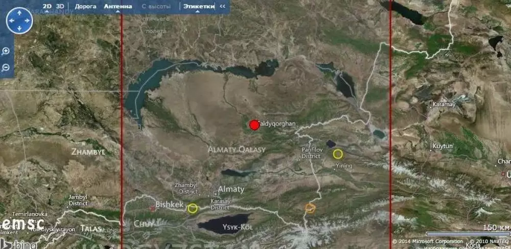 Эпицентр землетрясения располагался в четырех километрах от Талдыкоргана и в 239 километрах на северо-восток от Алматы.
