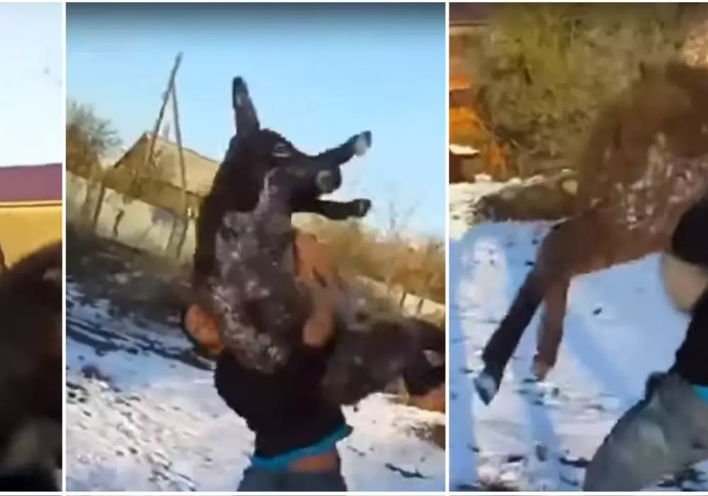 На кадрах видно, как мужчина несколько раз поднимает и навзничь бросает животное на землю. Оператор комментируют происходящее, говоря о том, что это своего рода "казакша курес". Короткий видеоролик быстро разошелся в Сети по различным социальным сетям. Пользователи активно комментируют видео и осуждают парня, жестоко обращавшегося с животным.