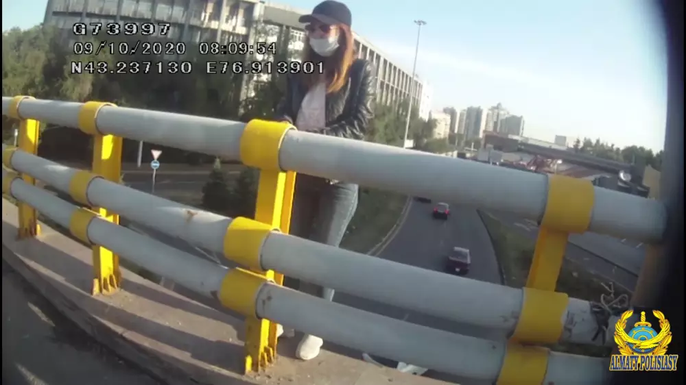 "Мы находились на своем патрульном участке. Нашу машину остановили несколько мужчин, которые сообщили, что наверху девушка пытается прыгнуть с моста. Мы заехали на мост и потихонечку приблизились к ней. Девушка сильно плакала, просила не приближаться к ней, не шла на контакт. Я разговорами стал отвлекать ее внимание, в это время мой напарник - лейтенант полиции Елдос Айдосов - под видом того, что разглядывает высоту моста, все ближе приближался к девушке. В какой-то момент он схватил ее за руку и блокировал все дальнейшие ее попытки вырваться. Далее мы вытянули девушку на эту сторону моста", - рассказал подробности  сотрудник патрульного экипажа "Буран-127" старший лейтенант полиции Нарбек Оразалиев.