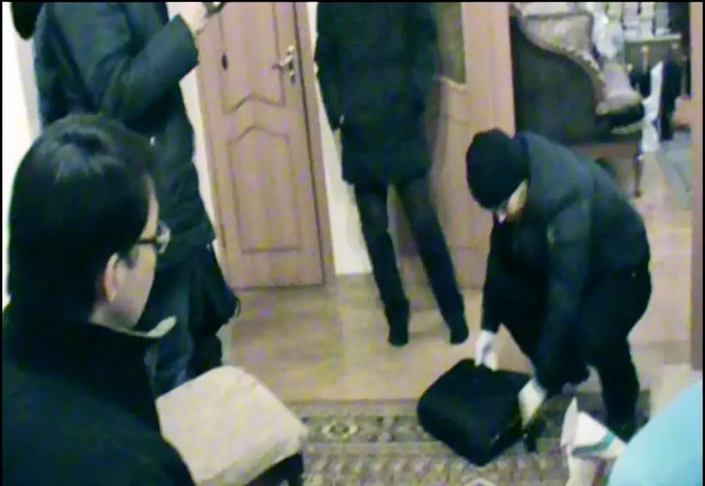 На оперативном видео сотрудники финансовой полиции в присутствии вице-министра Умирьяева изымают 100 тысяч долларов в его квартире. В случае со вторым чиновником Минсельхоза Максутом Бактибаевым, сотрудникам финпола удалось снять на скрытую видеокамеру факт получения взятки в размере 720 тысяч тенге. При задержании Бактибаев, отвечая на вопросы финполицейских, не отрицал факт получения взятки.