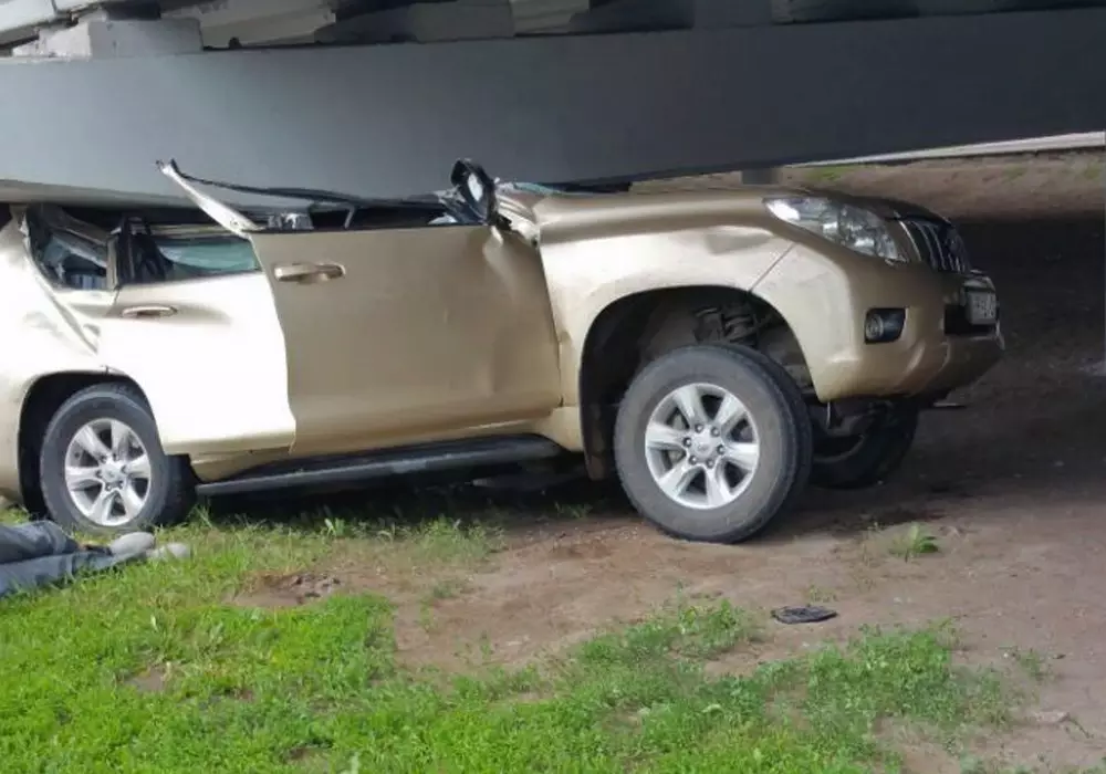 Внедорожник въехал в опору моста в Астане, из-за чего крышу автомобиля практически полностью снесло, передает корреспондент Tengrinews.kz.
