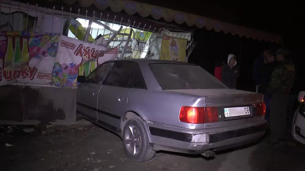 Водитель Audi врезался в киоск и скрылся с места ДТП в Алматы Кадр телеканала ©СТВ "Территория происшествий"