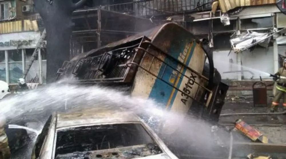 Перед тем, как врезаться в жилой дом возле отеля Rixos в Алматы, бензовоз повредил четыре автомобиля. Во время аварии водитель грузовика другим участникам движения не сигналил, об этом корреспонденту Tengrinews.kz сообщил один из первых водителей, пострадавших от удара бензовоза, Мирас Ярмухамедов. По словам местных жителей, они услышали хлопок от удара бензовоза о дерево. Огонь вспыхнул через 15-20 секунд. Как сообщил Ярмухамедов, он ехал на автомобиле Mitsubishi Pajero вниз по улице Сейфуллина и собирался повернуть налево. "На встречу встал Lexus RX 300, который ехал вверх. Ждали. Когда я собрался поворачивать, меня бензовоз ударил в левое переднее колесо, потом в заднее. Меня отбросило на этот Lexus, а он ушел вниз на Шевченко, еще одну-две машины зацепил. Я даже не понял, откуда он взялся", - рассказывает собеседник. Сейчас водители планируют провести независимую экспертизу и выяснить, на кого подавать в суд и требовать компенсацию. В результате пожара сгорело более 10 автомобилей. Сгоревшие машины, которые были припаркованы у места происшествия, отправят на городскую стоянку, где проведут следственные мероприятия, после чего решат вопрос о компенсации. Как предположил заместитель акима Алматы Юрий Ильин, бензовоз мог принадлежать компании Helios. В свою очередь представители фирмы отказались подтвердить эти сведения и комментировать ситуацию до выяснения обстоятельств. Возгорание бензовоза произошло возле спортивного магазина RealSport, огнем охвачены несколько этажей здания по адресу: улица Кабанбай батыра, 138. Водитель грузовика погиб. Из дома, охваченного пожаром, эвакуировали жителей. Некоторые сгоревшие авто принадлежат этим жильцам. Их разместят в расположенной неподалеку школе. Жители опасаются мародерства. Некоторым из них позволили осмотреть свои квартиры после пожара. Заместитель акима Алматы пояснил, что компенсация ущерба будет возложена на виновника происшествия. Власти города обещают оказать материальную помощь пострадавшим. Огонь охватил периметр квартала, вокруг полицейские выставили оцепление.