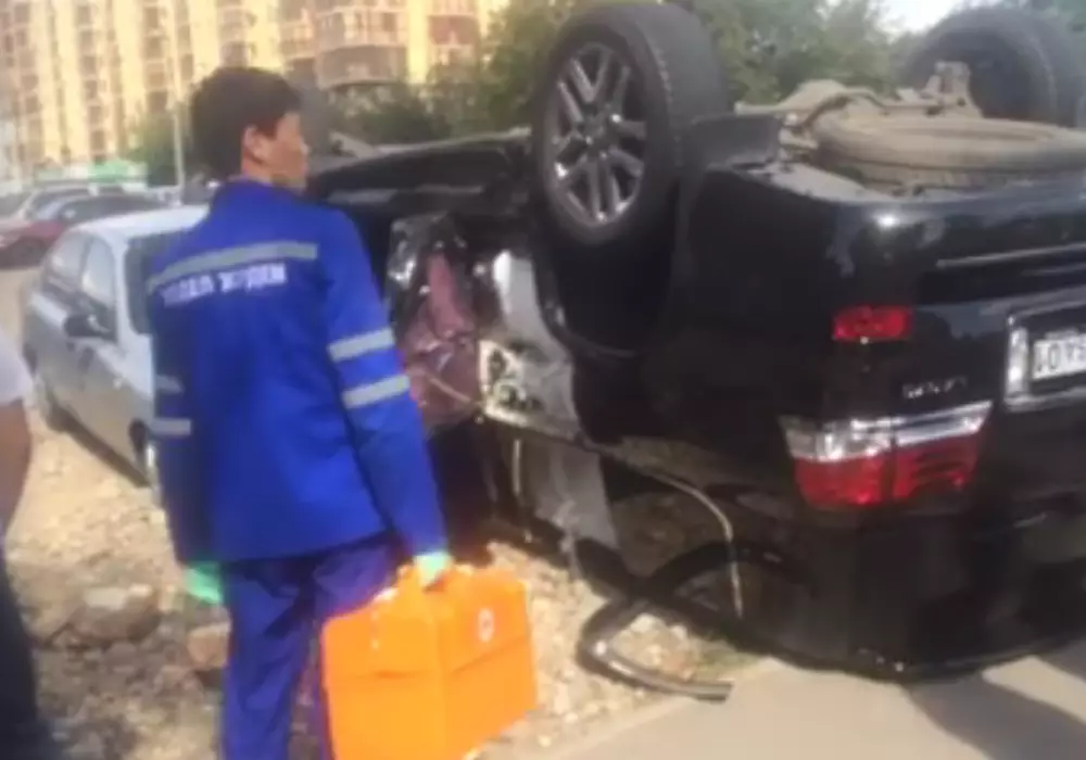 Водитель перевернувшегося в Астане внедорожника не уступил дорогу - предварительная версия ДВД Скриншот с видео на facebook.com