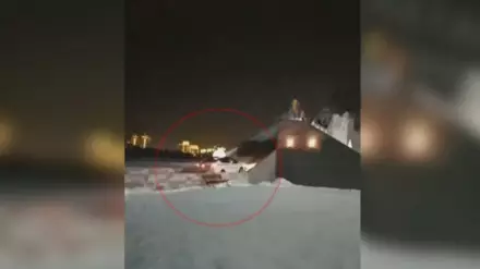 Водитель такси пытался заехать на ледяную горку в Нур-Султане, передает Tengrinews.kz.