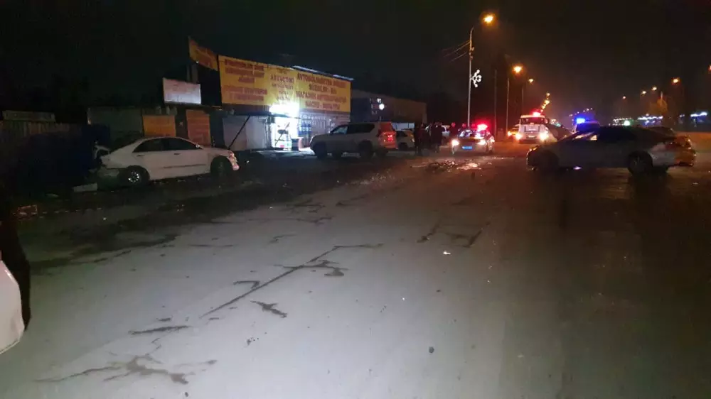 Toyota Camry столкнулась с тремя авто на Северном кольце Алматы, сообщает корреспондент программы "Территория происшествий" на телеканале СТВ.