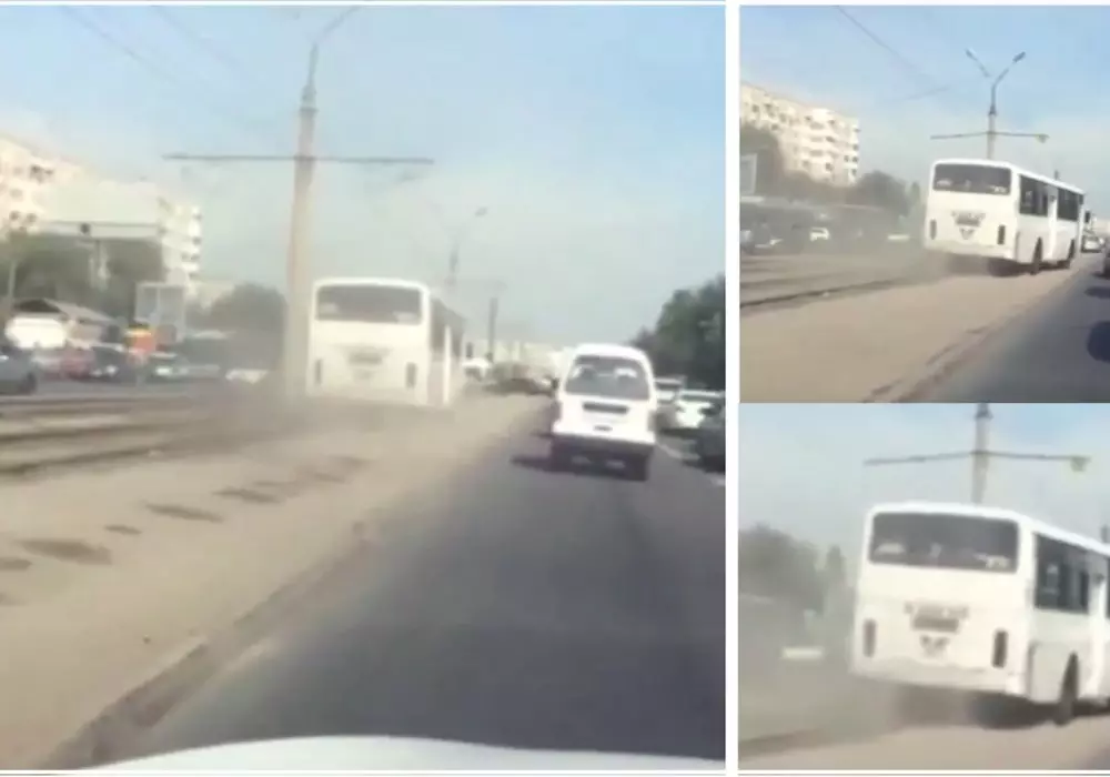 Водителя автобуса в Алматы оштрафовали за езду по трамвайным путям Кадры из видеоролика YouTube