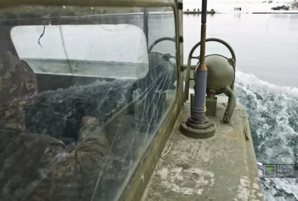 Водолазы ищут пропавший Ми-8 в озере Алаколь Осмотр водной поверхности на спасательном катере. Фото Владимир Дмитриев©