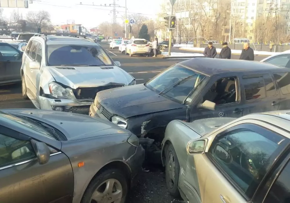 В Алматы случилось массовое дорожно-транспортное происшествие. На пересечении улиц Саина и Жандосова столкнулись восемь автомобилей, передает корреспондент программы "Территория происшествий" на канале СТВ.