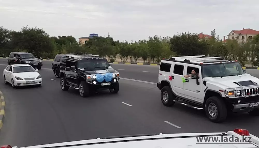 Одним из самых интересных моментов запечатлен на 1 минуте 55 секунде видео. В это время постовой пытается остановить свадебный кортеж, но его коллеги из SsangYong по громкой связи дают ему отмашку, крича - "Не останавливай!". Сотрудник правоохранительных органов возвращается на обочину, а когда не успевает, один из пассажиров кричит ему: "Уйди". Также движение на видео сопровождается свистом и звуковыми сигналами. В редакции Lada.kz считают, что ролик мог быть снят летом или в начале осени 2013 года.