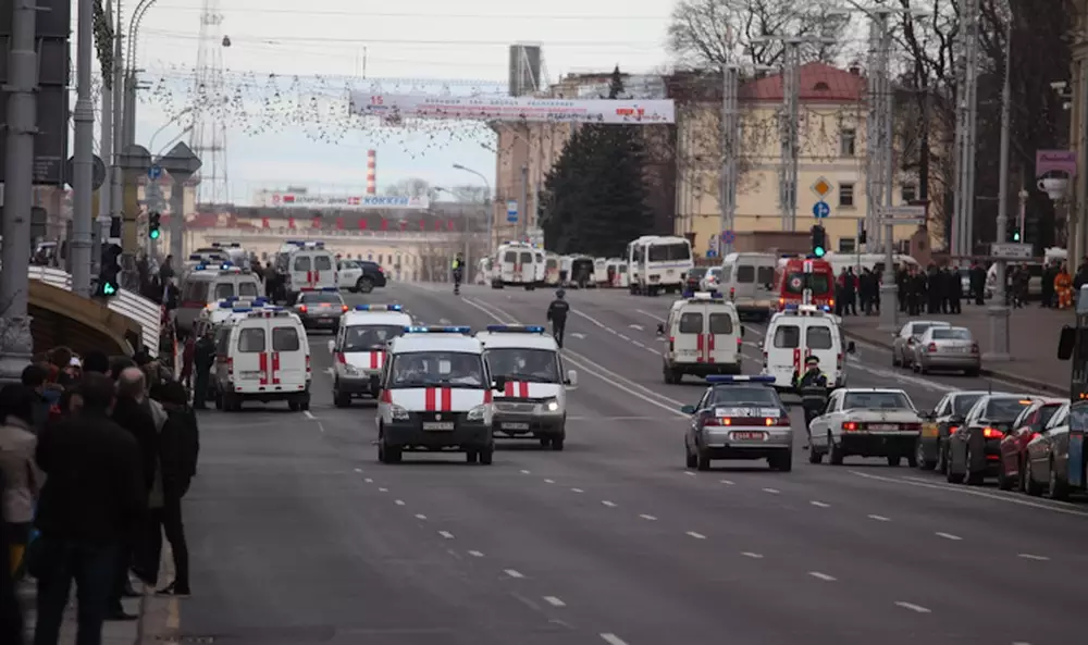 МВД Беларуси подтвердило, что взрыв на станции "Октябрьская" метро в Минске является террористическим актом, сообщает корреспондент Tengrinews.kz со ссылкой на официальный сайт минского метрополитена. Больницам скорой помощи, куда доставили пострадавших, не хватает крови. Они обратились с призывом помочь раненым. Взрыв на станции произошел в вечерний час пик около 18.00. По предварительным данным, погибли семь человек, пострадали более 80. На месте инцидента образовалась воронка. Президент Беларуси Александр Лукашенко посетил место трагедии и возложил цветы. Он осмотрел станцию в сопровождении главы МВД Анатолия Кулешова. Лукашенко с ближайшее время проведет срочное совещание в связи со взрывом. Глава государства поручил усилить меры безопасности на транспорте и оказать необходимую медицинскую помощь пострадавшим и их родным. Камеры наблюдения в метро зафиксировали момент взрыва. Первые кадры происшествия показало центральное телевидения Беларуси. Видео можно посмотреть здесь.